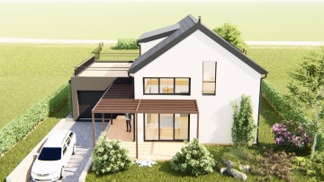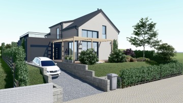 Novostavba dvoupodlažního zděného RD v Berouně - Závodí, ul. Pod Hůrkou (p. č. 558/49), dispozičně řešený jako 5+kk s terasou nabízející krásný výhled a garáží o celkové výměře 199,28 ㎡ na pozemku žo velikosti 629 ㎡.
