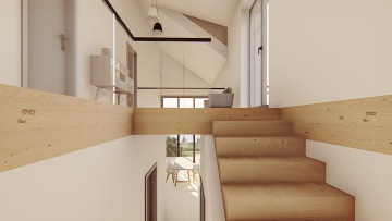 2. NP domu se skládá z chodby, koupelny, 3 pokojů a prostorné terasy s krásným výhledem - celkem 95,86 ㎡.