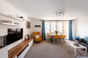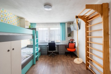 Tento byt je ideální volbou pro ty, kteří touží po kombinaci soukromí, pohodlí a přístupnosti. Disponuje moderním vybavením a prostorným rozložením, což ho činí skvělým místem k relaxaci a odpočinku po náročném dni. Dispozičně je řešen jako 3+1 s lodžií (orientovaná na západ). Ložnice (s orientací na sever), prostorný obývací pokoj se vstupem na zasklenou lodžii a dětský pokoj s vestavěným nábytkem na zakázku. V koupelně je sprchový kout, elektro kotel, který zajišťuje teplo a teplou vodu, toaleta je samostatná. Kuchyně je samostatná včetně veškerých spotřebičů. Užitná plocha bytu činí 98,73 m2.