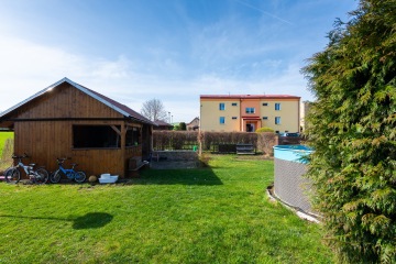 K bytu náleží dva sklepy, z nichž jeden je využívaný jako plnohodnotná pracovna s dostatkem dalších úložných prostor, druhý jako prádelna, taktéž s dostatečným dalším prostorem. Před domem jsou pro byt vyhrazena dvě parkovací stání a třešničkou na dortu je zahrada, která vám bude sloužit jako oáza klidu. Bazén pro děti k nekonečné zábavě, ale také krb a grilovací prostor pro uvolněné večery pro celou rodinu nebo posezení s přáteli na prostoru o velikosti 198 m2.