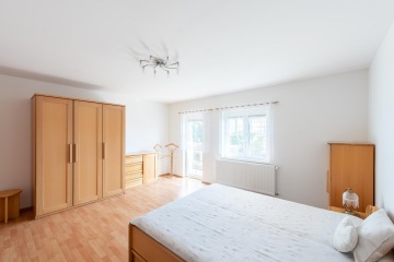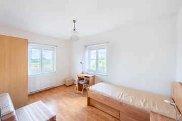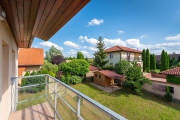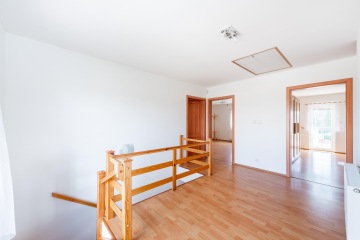 Ve 2. NP jsou 3 samostatné, velkorysé a světlé pokoje s dostatkem úložného prostoru. Dva z nich mají vstup na balkon. Hlavní ložnice má svoji samostatnou koupelnu s vanou, sprchový kout, toaletu a bidet. Na chodbě je dále samostatná toaleta, šatní prostor a další balkon. Z chodby je vstup na půdu, která lze využít jako další úložiště pro sezónní věci. Dům je již vyklizený.