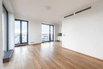 Nabízený byt má podlahovou plochu 48,5 m2 a nachází se v posledním patře. Skládá se z předsíně (5,6 m2), koupelny (3,5 m2), WC (1,5 m2), pokoje s kuchyňským koutem (28,7 m2), veškeré zařízení značky Miele a komory (9,2 m2). Byt má masivní bezpečnostní dveře, dřevěné podlahy, klimatizaci, venkovní žaluzie, videotelefon a nabízí krásné a bezpečné bydlení v perspektivní lokalitě.