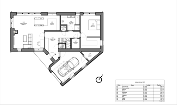 1. NP domu se skládá ze vstupní haly, obývacího pokoje, kuchyně, ložnice / hostinského pokoje, koupelny, toalety, prádelny, tech. místnosti, skladu a garáže - celkem 113,39 ㎡.