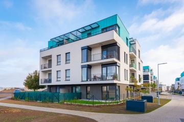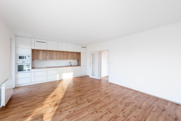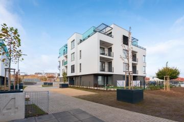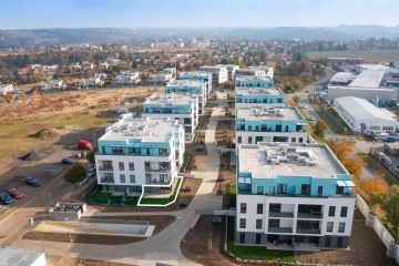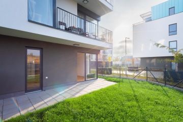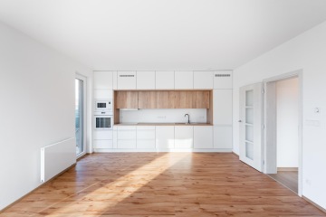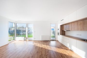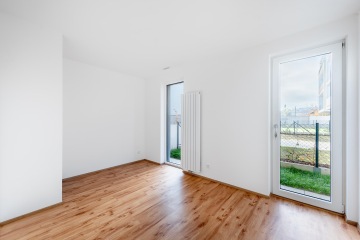 Byt v novostavbě z roku 2021 je dispozičně řešen jako 2+kk o celkové výměře 55,9 m2 (včetně sklepa o velikosti 3,61 m2) se zahradou o rozloze 61,53 m2 a terasou 12,17 m2 (součást zahrady). Byt je orientován jiho-západně. Slunce na zahradě si tak užijete velkoryse. V bytě byly provedeny klientské změny a je v nadstandardním provedení. Vinylové podlahy v kombinaci s keramickou dlažbou a obklady. Sprchový kout byl vyměněn za vanu se zástěnou Villeroy & Boch. Vstupní dveře do bytu jsou bezpečnostní. Venkovní žaluzie od firmy CLIMAX jsou na dálkové ovládání, které bytu dodávají soukromí, stejně jako bezpečnost.